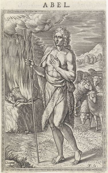 Curator: Let's dive into this print, "Grieken - Alexander de Grote," created by Jeremias Falck in 1644. It's an engraving that presents a very stylized Alexander the Great. What strikes you most about it? Editor: I'm interested in the way Alexander is portrayed. He has these angelic figures behind him on the left, while, on the right, there's this darker scene. The contrast in imagery, I think, establishes him almost as this bridge between good and evil? I was wondering what other layers of meaning you see in this? Curator: It’s astute to notice those juxtapositions. Given that Falck was working in the 17th century, what kind of power dynamics do you think are at play in the way Alexander is being represented? It's also important to consider how these portrayals reinforce colonial ideals, using historical figures to validate contemporary hierarchies and suppress marginalized communities. This glorification contributes to the ongoing cultural dominance and erasure of other narratives. Editor: So, the contrast between light and dark, the almost godlike status given to Alexander in this engraving…you’re suggesting it all serves a bigger purpose than just historical depiction. The visual symbolism then works to perpetuate existing power structures? Curator: Exactly. It becomes part of a broader visual rhetoric used to establish and maintain authority. And thinking critically about this rhetoric is something we as viewers can bring into the present moment to promote new conversations. Editor: It makes me consider the role of art in perpetuating ideologies and its potential for challenging them. Curator: Precisely. It really gets you thinking about representation, doesn't it? The politics inherent in historical depictions, and how art continues to reflect and shape our understanding of power.