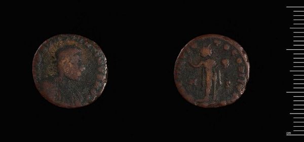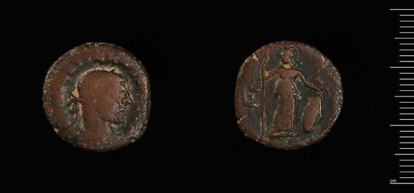 Editor: This is a coin, an AE3 to be exact, of Honorius. It's so small, yet it feels weighty with history. What can you tell me about its imagery? Curator: Look closely at the figures. Do you notice any recurring symbols of power, perhaps a scepter or a diadem? These objects acted as powerful visual cues that legitimized Honorius's rule and perpetuated his image throughout the empire. Editor: So, it's all about creating a lasting image, a brand, almost? Curator: Precisely. Consider how these symbols may have resonated differently across diverse cultures within the Roman Empire, and how they might still affect us today. Editor: That's a lot to think about. I'll definitely look at coins differently from now on. Curator: Yes, objects like these coins show how images become powerful conveyors of ideology and cultural memory.