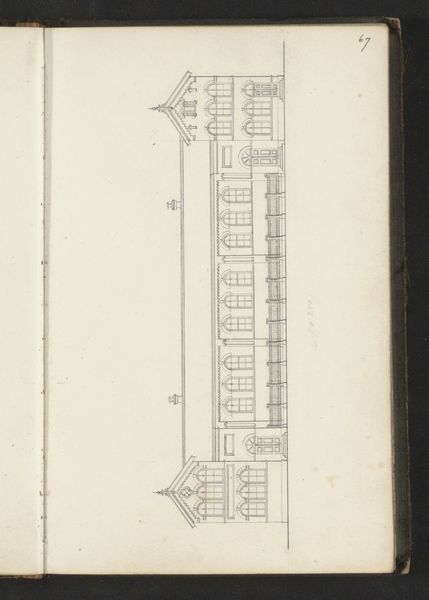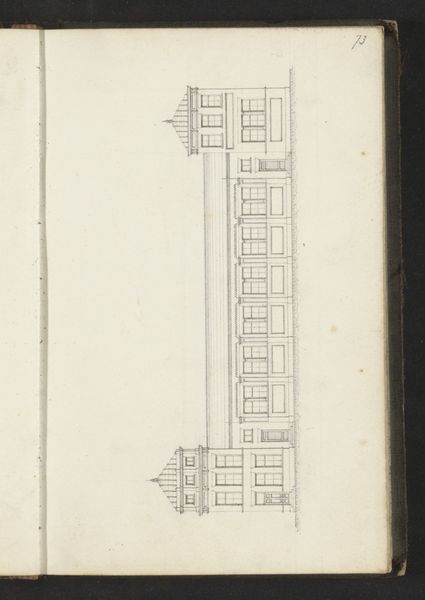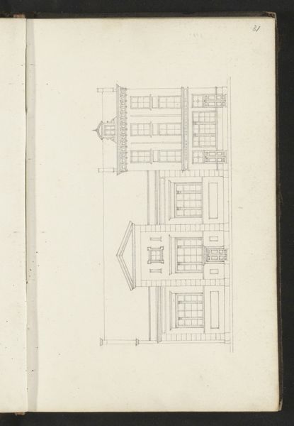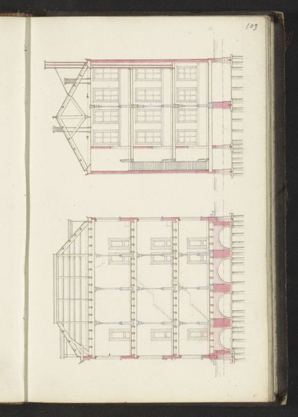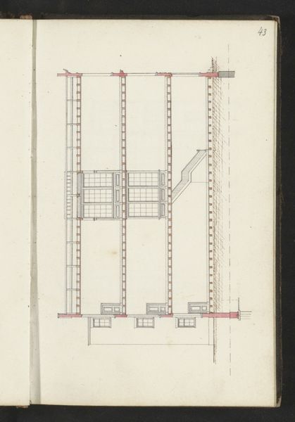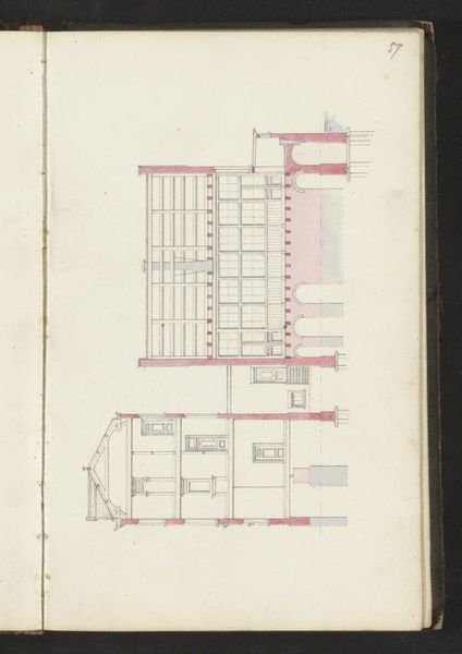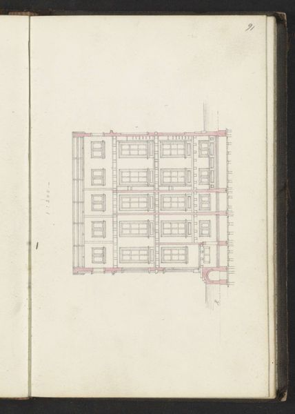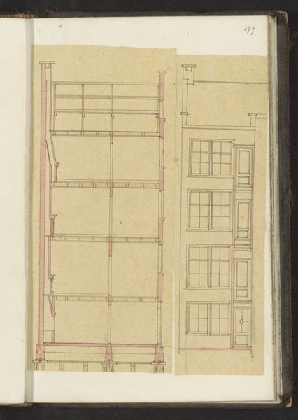 Willem Springer Jr. created this architectural study of a building façade and cross-section using graphite and watercolor on paper. Here we see the intersection of craft and industrialization, the handmade and the mass-produced, as Springer depicts a building reliant on both. While he captures the façade’s design elements, the drawing's emphasis on internal structure reveals the labor and materials required for its construction. The regular rhythm of bricks and beams speaks to industrialized production, while the hand-drawn quality highlights the skill involved in architectural planning and design. The watercolor accents bring attention to structural elements, but also hint at interior design choices, layering hand-painted finishes on top of the building's bare bones. This evokes the many hands involved in both building and inhabiting such spaces. By examining the processes of design and construction, Springer's drawing shows the confluence of artistic vision, skilled labor, and industrial production required to shape our built environment.