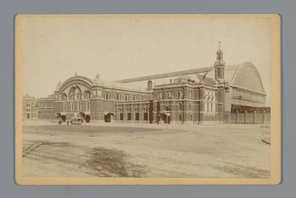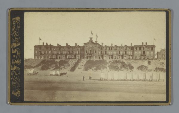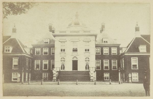 This photograph of the Sophia Stichting building in The Hague was captured by Heinrich Wilhelm Wollrabe using light-sensitive chemicals on paper. The sepia tone and the texture of the print itself speak to the alchemical processes that defined early photography. The image's clarity emphasizes the architectural details of the building, its symmetrical facade, and the repetitive brickwork that makes up its structure. We see a clear relationship between industrial production and social infrastructure, even in this pre-digital era. The photograph also tells us a lot about the work involved in creating an image at this time: the careful composition, the long exposure times, the darkroom processes. Wollrabe was clearly engaging with both scientific advancements and artistic expression. By considering the means of production, we see how this image bridges the gap between documentation and artistic creation.