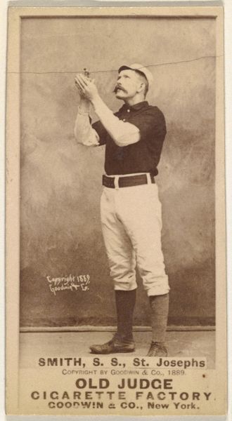 This is John E. "Scrappy" Carroll, a right fielder for the St. Paul Apostles, immortalized in a baseball card made by Goodwin & Company in the late 19th century as part of their "Old Judge" series. These cards emerged during a period of burgeoning consumer culture and rising popularity of baseball. Predominantly white, the players strike heroic poses in contrast to the social realities of the time, marked by racial segregation and class disparities. What does it mean to see this figure of masculinity, this archetype of Americana, preserved on a small card, sold with cigarettes? These cards were both a celebration of athletic prowess and a commercial tool. They reflect an era where identity was being shaped and commodified through mass media, and where narratives of success and aspiration were often at odds with the lived realities of many. The history and identity of baseball are closely tied to American cultural ideals, and it is important to think about what is included and excluded from this history.