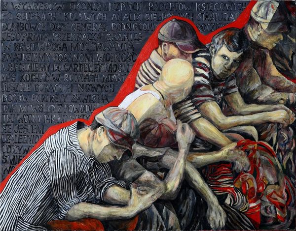 Thiago Boecan’s painting "3 Red Figures", displays three figures rendered in shades of red against a warm, almost fiery orange background. The figures dominate the canvas, their forms expressed through bold brushstrokes and a palpable sense of raw emotion. The composition emphasizes the human form, with its stark representation reminiscent of Francis Bacon's distorted figures, challenging conventional ideals of beauty and representation. There is no clear narrative, prompting a questioning of the human condition. The heavy reliance on red could be interpreted through a semiotic lens, representing passion or pain. In the end, the artist presents us with an image stripped down to basic elements; color, form, and texture. This abstraction invites viewers to project their own emotions and narratives onto the canvas, acknowledging that art is a dynamic site for ongoing interpretation.