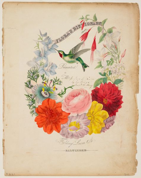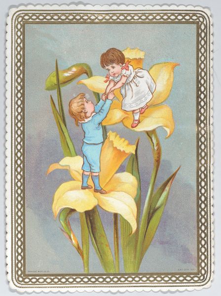 Curator: Here we have Theodor Severin Kittelsen’s delicate watercolor titled “May,” created in 1890. It’s a piece steeped in Romanticism. What are your initial thoughts? Editor: It strikes me as extraordinarily fragile, both in technique and subject. The watercolour, those washes of greens and whites, gives an impression of ephemerality. Is that couple even real? Curator: I think that sense of transience speaks directly to its era and the anxieties around shifting social roles. Kittelsen was grappling with themes of love and identity amid a rapidly changing world, where traditional roles were constantly challenged, particularly gender roles. Editor: Right. And the means by which he’s rendered the flora – so exactingly! It borders on botanical illustration and I’d guess that precise, painstaking method contrasts with the central figures. The sharp focus on the leaves compared with the dreamy treatment of the couple does make me think about what Kittelsen is foregrounding in the relationship of human figures to material reality. Curator: Exactly. The flowers and butterflies aren't just decorative; they symbolize cycles of nature, the brief beauty of life, and the transformation inherent in romantic relationships. Editor: The material vulnerability is powerful. Watercolor is notoriously difficult to correct. Each wash is a record of time and process. This sense of unrepeatable, almost reckless application contrasts starkly with the tight strictures imposed by Norwegian bourgeois society at the time, I imagine? Curator: Certainly, and it offers an important contrast. Here you see this public display of intimacy, and how this very act exists, fleeting, like a single brushstroke, within that wider social landscape of flowers and insects—its lifespan intimately entwined. How long will those sentiments remain, and can their relationship actually take root? Editor: I agree, I find the image both hopeful and haunted by its own materiality. What else do you see in it? Curator: For me, it reveals Kittelsen's deep engagement with his social context, providing a rich commentary on the shifting sands of love and gender identity. Editor: I will have to spend a little more time thinking through his craft. I hadn't made the connections until we discussed how technique serves these important political themes in the art!