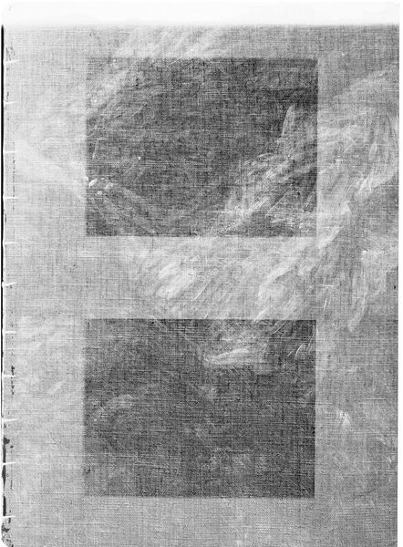 Editor: This is an X-radiograph of "Fleeing Shepherd" after Pieter Bruegel the Elder. It's quite abstract, almost like a ghostly checkerboard. What am I actually seeing here? Curator: Indeed! It's like peering beneath the surface, isn't it? An X-ray reveals the hidden layers and brushstrokes—the artist's initial thoughts, pentimenti, that give the painting its history. Do you see the dense areas? Those would be the areas with thicker paint application or perhaps different pigments. Editor: Oh, I see! So it’s like a map of the artist’s process? Curator: Precisely! A hidden narrative, revealed through science. It makes you wonder about the stories locked within other artworks, doesn't it? Editor: It really does. Thanks for illuminating this for me!