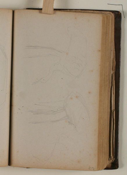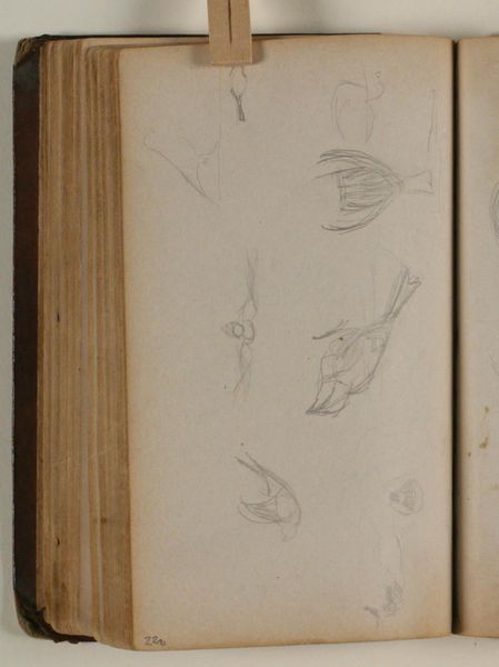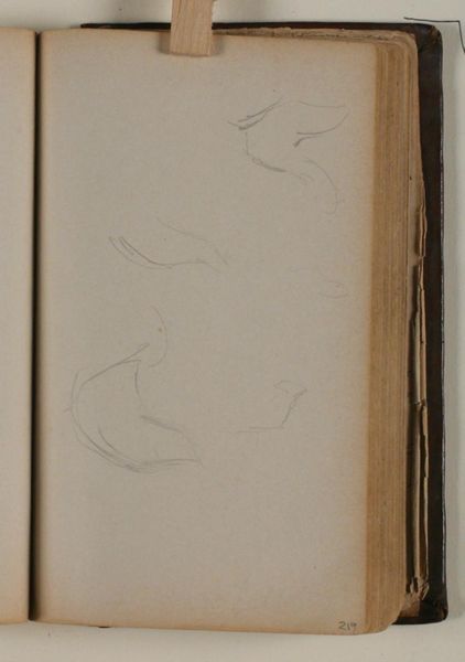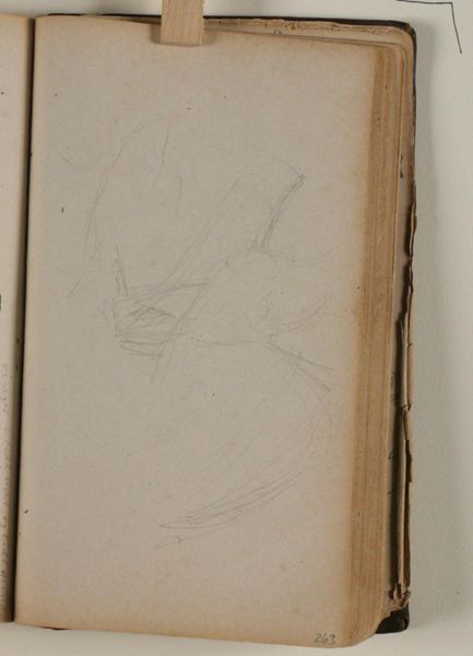 This is a page from a sketchbook by Niels Larsen Stevns held at the SMK, featuring a pencil study of an eagle. Observe the composition and the artist’s marks. There's a real sense of dynamism here, captured through these fleeting lines. The eagle's form is only suggested, not concretely defined, allowing its essence to emerge from the negative space. It invites us to consider the relationship between absence and presence in art. We are prompted to think about how an artist, using only minimal strokes, can capture the vitality of a subject. Stevns seems less interested in literal representation and more in the raw energy of the bird. The eagle, a symbol of power and freedom, is here not just observed but also actively re-imagined. This challenges our ideas about the nature of seeing and the act of drawing. This piece ultimately shows how lines can explore, discover, and redefine the boundaries of form itself.