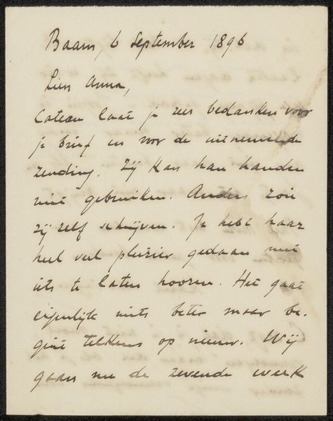 André Jolles penned this letter to Jan Veth in 1902. Its visual field is dominated by the formal elements of script set against the off-white paper, presenting a study in contrasts between line and ground. The evenness of the writing creates a rhythmic pattern, almost like musical notation, suggesting a carefully considered composition. The letter as a form destabilizes conventional categories of communication. It is both a personal expression and a constructed text. The handwritten nature adds an intimate quality, yet the structured arrangement of words and sentences reveals an effort to convey meaning. It's a semiotic system where language and handwriting intersect, complicating a clear reading. Ultimately, the letter exists as a dynamic interplay between Jolles and Veth. The formal arrangement of text invites ongoing interpretation of cultural and philosophical discourse.