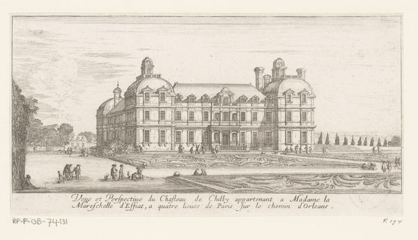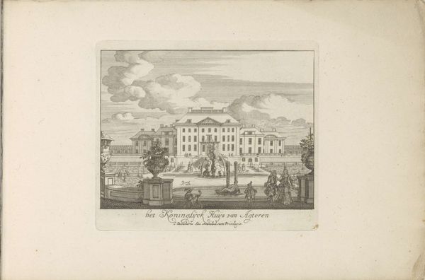 Carel Allard created this print, "View of Honselaarsdijk Palace on the West Side," in the late 17th century, offering us a glimpse into the Dutch Golden Age’s fascination with power and aesthetics. The print depicts the Palace, not just as a building, but as a stage for social display and political maneuvering. Consider the carefully arranged gardens and the figures strolling. What stories do they tell of privilege, leisure, and control over nature and society? Allard was working in a society deeply stratified by class and defined by its colonial wealth. The palace, commissioned by a prominent figure, represents the apex of Dutch power and prosperity, built on global trade and, undeniably, exploitation. What does it mean to immortalize such a symbol of authority? It prompts us to reflect on the legacies of power, their visual representation, and how they continue to shape our understanding of history.