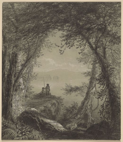 Editor: We're looking at "Oerwoud op Java," or "Jungle in Java," an etching by Wijnand Otto Jan Nieuwenkamp, created sometime between 1907 and 1917. It’s all in shades of brown, creating this almost dreamlike vision of the jungle. What do you make of it? Curator: Dreamlike indeed! It’s a real portal into Nieuwenkamp’s inner world, wouldn’t you say? You know, I almost feel like I’m looking at a memory... the details slightly fuzzy around the edges, the air thick with humidity, that incredible silence before a downpour. It feels like the essence of Java distilled through his own lens, a place both beautiful and perhaps a little unsettling. Do you get that sense too? Editor: I see what you mean, almost as if the details don’t fully come into focus. There's this intriguing light pulling you in. What about those tiny figures at the bottom; do you think they ground the work in reality? Curator: Ah, the tiny figures. For me, they highlight the almost overwhelming power of nature. Think of it this way: We're presented with a stage—a wild, primeval jungle—and onto this stage, Nieuwenkamp introduces figures, dwarfed by their surroundings. The effect? An almost spiritual sense of the sublime! A recognition of something much greater than ourselves. Maybe it even speaks to his place as a Dutchman in Java? Editor: That's a fascinating point! It’s so different from a scientific rendering; the jungle almost becomes a character. Curator: Exactly! Nieuwenkamp isn’t just depicting a place, he’s capturing a feeling, an experience, an inner landscape reflected in the outer world. He uses symbolism to speak to our souls. The light isn’t just light; it's perhaps hope, or enlightenment! And the deep shadows? Well, maybe that’s the unknown, waiting just beyond the trees. Editor: I'm definitely seeing the symbolic layers now. It’s more than just a pretty picture. Thanks, that gave me a lot to think about! Curator: My pleasure! Isn't it wonderful how a simple etching can open up such a wealth of interpretations? It reminds us that art is ultimately about connection: connecting to ourselves, to the world, and to each other.