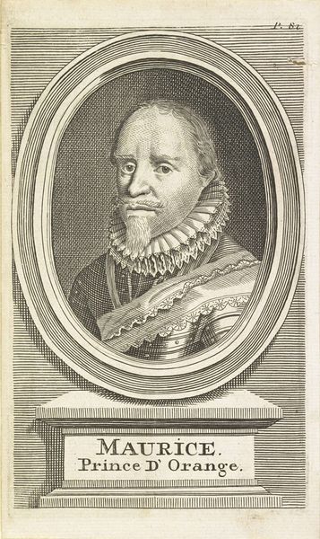 This is Reinier Vinkeles's "Portret van Francis Vere", made with etching. The portrait is contained within a structured geometric frame, sharply contrasted against the soft, organic lines of Vere's face. A rectangular panel below it displays an illustration of his military achievements. What strikes me is the layering of geometric forms: a rectangle that houses the portrait and the lower illustration, inside of which is an ellipse with a portrait of Vere. This series of nesting shapes creates a sense of order and containment that draws attention to the face. The use of line is precise. It creates texture, dimension and depth and serves as a visual metaphor for the structures that define identity and legacy. The contrast between the geometric and organic elements invites us to think about how individuals are framed by societal expectations, and also how art creates meaning through form. Remember, art's value lies in its perpetual invitation to new interpretations.