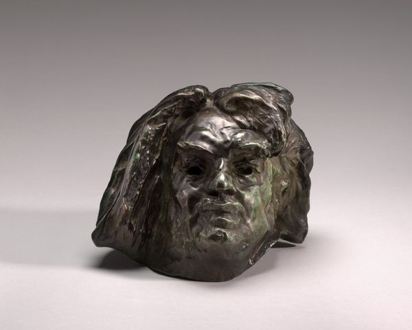 Curator: Here we have "Portrait of a Woman (Mme Albert Bartholomé (?))", rendered in bronze by Edgar Degas, sometime between 1890 and 1920. What's your initial reaction to it? Editor: She seems so...withdrawn. There's this heavy sadness, but it's also strangely peaceful. The dark patina of the bronze deepens that somber mood. The composition, too, with her resting her face on her hand, conveys fatigue or perhaps deep contemplation. Curator: I think that's spot-on. Degas wasn't just trying to capture likeness, was he? The pose speaks to the sitter's internal world, not just her physical presence. The way he's roughed up the surface, left the marks of his hand so evident, that's almost brutal in its honesty. It rejects classical smoothness for something far more psychologically raw. Editor: It's the antithesis of idealization, definitely. You feel like you're looking at a real person burdened by something, or maybe just life itself. And bronze as a medium – we often associate it with commemoration and triumph. Here, it's almost a counter-monument, marking a private, unseen emotion. The lowered eyes have resonated in art for centuries, signaling introspection, a refusal to meet the gaze of the world. I wonder what inner space Degas wanted to reveal here. Curator: Degas was often like that – a rebel within Impressionism. This bust is quite different from his ballerinas, who seem to defy gravity; this woman appears firmly grounded, held down by something intangible. The title gives us so little—only a tentative identification. Maybe this ambiguity forces us to confront the universal experiences of sorrow or resignation. Editor: Right, the uncertainty in the title adds to the mystery. It emphasizes the "woman" over the "Mme Bartholomé," so, perhaps we're invited to see her as an archetype. A stand-in for unspoken emotional realities that echo across cultures and time. Bronze, though fixed and permanent, oddly gives the face a vulnerable feel in how the light interacts with its surfaces. Curator: Exactly! Perhaps, we, as viewers, should reflect more on how these emotional undercurrents connect us. What feelings this portrait evokes within our own history. Editor: What she reminds us of, the universal vulnerability inherent in all living things. I'm grateful that Degas immortalized something as fragile as inner contemplation.