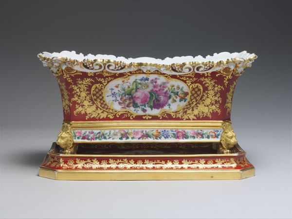 This elaborate textile, a bed valence, was made by Beauvais, the famous French manufactory. It's woven using wool and silk, materials that speak to luxury and skilled craftsmanship. Look closely, and you'll see how the materials dictate the appearance. The silk threads create a subtle sheen, while the wool provides depth and texture. The weavers would have used a low-warp loom, meticulously interlacing threads to build up the design. The density of the weave, combined with the plushness of the materials, gives the valence a weighty, substantial feel. The complex floral patterns and drapery-like effects showcase the expertise of the Beauvais workshop, which employed highly skilled artisans. This kind of piece would have been commissioned for the wealthiest echelons of society, and involved many hours of work. Considering the labor involved, and the social context of elite consumption, we can see this textile as more than just decoration. It's a material record of craft, skill, and social status, blurring any easy distinction between art and design.