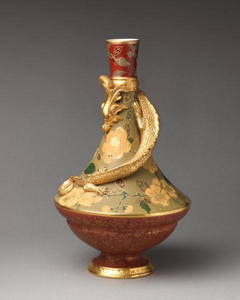 Curator: What a fascinating piece! The details in this figure are incredible. Editor: It has such a stately, almost arrogant, air about it. What is it made of? Curator: We're looking at a 19th-century marble sculpture of a “Roman Emperor,” created by Reinhold Vasters. It’s part of the decorative arts collection here at the Met. What strikes me is how Vasters evokes the grand traditions of Neoclassicism, yet it is so richly embellished, such that it speaks more of theatrical display. Editor: The embellishments certainly draw the eye, even distract from the marble figure. The gold trim especially, edging every garment, seems to denote the ruler’s power… and his wealth. Does the eagle perched atop the helmet point toward anything specific? Curator: It is undoubtedly a visual shortcut, an immediate connection to Roman imperial power and military might. Eagles in ancient Rome were emblems of the state, representing Jupiter and, by extension, the emperor. Vasters clearly wanted to embed a quick read into the symbol of Roman imperium. Editor: The use of varied colored marble is striking. Does that chromatic range have historical relevance? Curator: It might signal a conscious connection to the opulence associated with the late Roman Empire. During that period, the use of vibrant and imported marbles was definitely intended to project power, wealth, and refined taste. What Vasters offers here might be a pastiche. Editor: Yes, the more I observe, the more theatrical this piece becomes. Given its period, the sculpture becomes something of a statement on how the 19th century views imperial grandeur, Roman history filtered through an almost dreamlike lens. What are your thoughts on how the figure's stance contributes to this narrative? Curator: Absolutely, that sense of slightly aloof self-regard amplifies that reading of power as performative, which fits neatly into a 19th-century fascination with both the spectacle and supposed moral lessons of classical antiquity. Seeing the Roman Empire as at once awe-inspiring and, also, decadent. Editor: So much to contemplate in one little figure. It has become an image about images. Curator: Precisely, a potent distillation of history, symbolism, and commentary, all materialized in colorful stone.