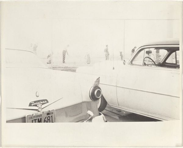 Curator: This gelatin-silver print, known as "Untitled (Woman asleep in car)," dates back to the 1940s and is attributed to an anonymous photographer, making it a particularly fascinating case study. Editor: It evokes a potent feeling of weariness. The soft light and intimate framing create a surprisingly vulnerable atmosphere. One wonders, why is she sleeping in her car? Curator: That’s precisely the question that fuels my historical curiosity! What were the circumstances leading to this moment? Was this a common sight in the 1940s? How did travel, class and gender intersect in the postwar years? Considering that automobile ownership expanded significantly, these spaces became extensions of home, particularly for women, during that era. Editor: Interesting point. Did social or political upheaval influence the photographer’s perspective or this woman’s life choices? Is her rest a form of quiet resistance against some pressure or demand? This woman looks tired to the bone. Are the reasons financial or social? Is she in transit, or has she been forced from another space? Curator: These are all very relevant contextual threads to explore. The Ashcan school influences and genre painting associations hint at an intention to capture everyday reality without romanticism, which gives credence to your theories. But let's think about what the absence of identifying information means. Is it to give the subject protection, or perhaps the opposite effect? This photography becomes more complicated and ethically questionable the longer we spend looking at it. Editor: You're right; the lack of a known artist's intentionality shifts how we interpret the image. What seemed initially to me as simply a voyeuristic capturing of intimate fatigue expands to encapsulate concerns around access, consent and power dynamics during the rise of consumerism and mobile freedom. There is more than just tiredness in this shot: this image exudes questions! Curator: I appreciate you pointing out the social context. It urges me to contextualize and rethink how such an unadorned shot is interpreted. Editor: And your points about context lead me to wonder more carefully about both what this image meant then and what it tells us today about class, mobility, and maybe more darkly, who has the power to look at, and document, who, and in what states.