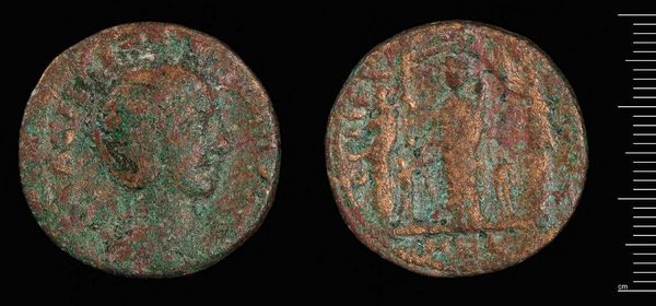 Editor: This is a coin from Amphipolis under Antoninus Pius. It’s small, worn, but still, I can make out the portraits. What stories do you think this object holds? Curator: Coins are fascinating because they embody both power and everyday life. The portrait links to imperial authority, conveying stability and divine favor. However, the wear and tear suggest countless transactions, carrying the sweat and hopes of common people across generations. Editor: That's a great perspective. I hadn't thought about the common people touching this coin. Curator: Consider also the imagery beyond the portrait—perhaps a local deity or symbol of trade. Each element speaks to cultural memory and civic identity. What do you make of the choice of imagery for a coin of that time? Editor: It shows that even the smallest objects can reflect a complex interplay of power, culture, and daily life. Curator: Precisely, and that's how symbols endure.