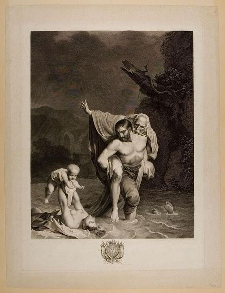 Editor: This is Carlo Antonio Porporati's "Adam and Eve Weeping over Abel." The raw emotion is intense, and it feels so staged. I wonder about the intended audience for a piece like this. What societal norms or beliefs do you think this work reflects? Curator: It's fascinating how the engraver Porporati reframes such a primal scene of loss through the lens of 18th-century sensibilities. Notice the dramatic poses and the classical allusions. How do these aesthetic choices influence the viewer's emotional response, and perhaps, reinforce the social hierarchy of the time? Editor: That's a great point. I hadn't considered how the style itself is a social commentary. Thanks! Curator: Indeed. And thinking about its place in art history and in our own understanding of grief and power structures adds another layer to our viewing experience.
