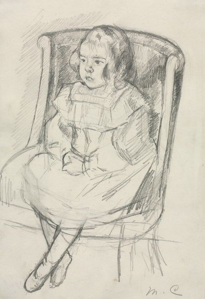 Jozef Israëls made this drawing of a girl sitting and standing, using graphite on paper. This is a rapid study, a working drawing. Graphite is a humble material; think of the grind of pencils, the soft greyscale it produces. The artist used delicate lines to capture a sense of light and shadow on the girl's face and clothing, with a cross-hatched background adding depth to the composition. You can see him testing out the same motif twice on one sheet, a way of figuring out the image through labor. Israëls was interested in capturing the lives of ordinary people, particularly those of the working class. The girl is dressed simply, with a plain dress and clogs, suggesting her humble background. Israëls elevated those backgrounds, depicting them with dignity, even beauty. It makes you wonder about the economic and social conditions that defined the lives of the people he portrayed. By focusing on the lives of ordinary people, Israëls challenged the traditional boundaries of fine art, reminding us that art can be found in the everyday.