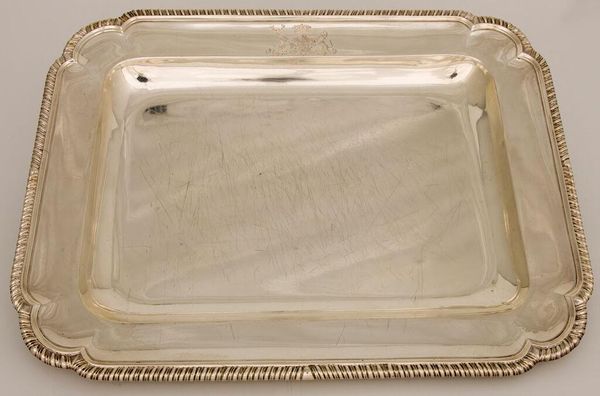 Editor: This is Thomas Robins' "Meat Dish," a silver platter. It appears quite heavy and solid. The craftsmanship seems meticulous. What can you tell me about it? Curator: Considering its function, we have to think about the social context of its use. Who would have been eating off it? How does the material, silver, reflect wealth and status? Editor: So it’s not just about the aesthetics but also about the power dynamics inherent in who gets to use such a dish? Curator: Exactly! The labor involved in producing the silver, the means of acquiring it – all these factors are embedded in the object. Editor: I never thought about a platter having so much to say about society. Curator: Materiality can unlock a wealth of social history if we only look close enough.