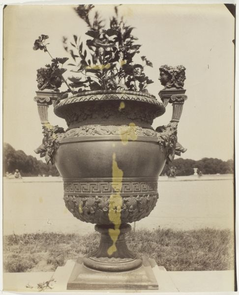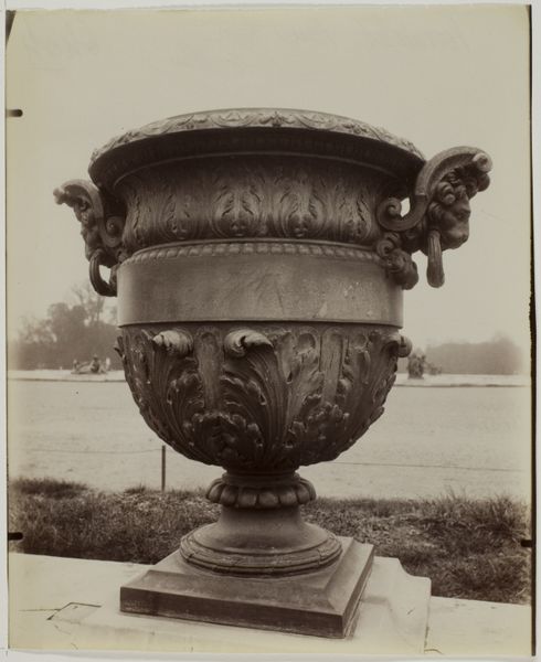 Eugène Atget created this photograph of the Basin de Neptune at Versailles using a large-format camera, likely around the turn of the 20th century. The image is a study in contrasts, capturing the grandeur of the formal gardens through a muted, almost melancholic lens. Atget used the wet collodion process, printing on albumen paper, which gives the photograph its soft tonal range and distinctive sepia tone. These photographic techniques, though well-established by Atget’s time, required considerable skill. His choice to continue using them is significant. The sculpture itself represents the aspirations of Louis XIV, literally cast in stone through the labor of many artisans. Atget, however, captured it at a moment when such aspirations were fading. His photographs, made for documentation and for sale to other artists, remind us that even the grandest statements of power are subject to time's relentless processes. Atget’s work underscores the importance of considering not just what is depicted, but how it is made, and what that making signifies.