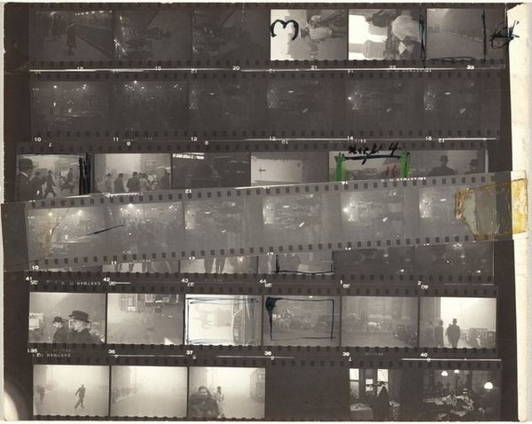 Robert Frank created this intriguing contact sheet, "Paris 3B," using gelatin silver print. Frank, a Swiss photographer, is renowned for his outsider's perspective on American society. Yet, here we see Paris through his lens. This contact sheet offers a behind-the-scenes glimpse into Frank's artistic process. It's a collection of moments, a narrative thread of Parisian life. We see crowds, intimate interiors, and street scenes. Frank once said, "There is one thing the photograph must contain, the humanity of the moment." It's evident in his choice of subjects: ordinary people going about their day. This work challenges traditional representations by showing us the raw, unedited moments of life. It makes us consider how we construct narratives and how Frank, as an outsider, captured the essence of a place and time. "Paris 3B" is not just a collection of images, it’s an emotional and personal reflection on identity, culture, and the human experience.