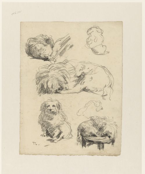Cornelis Brouwer created this red chalk drawing, "Zittende en liggende hond," which translates to "Sitting and Lying Dog," likely in the late 18th century. During Brouwer's lifetime, the Dutch Republic was undergoing significant political and social changes, and images of domestic life and animals were becoming increasingly popular, reflecting a growing interest in personal comfort. While seemingly a straightforward depiction of domestic animals, it's impossible to view such a work outside the history of the West's relationship to animals, one marked by power, control, and sentimentality. Brouwer's choice to portray these dogs in such intimate poses invites a consideration of the emotional bonds between humans and animals. The drawing may prompt reflections on our contemporary relationships with pets, particularly as they intersect with class and privilege. What does it mean to care for, and be cared for by, another species? How does that exchange reflect on who we are?