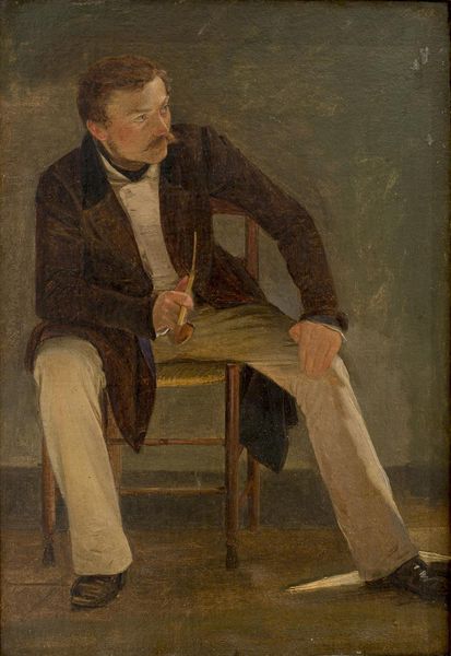 Curator: Jacques-Émile Blanche painted this portrait of John Lemoine in 1887 using oil paint. What strikes you first about this work? Editor: A certain austerity, actually. There’s something deeply serious, almost melancholic, in the subject's pose and the subdued color palette. The figure commands the space with a sense of self-possession, but it is a very reserved, formal dominance. Curator: I think Blanche here uses the visual language of power, yet subtly complicates it. Look at how the rigid social expectations and constructs of masculinity during the late 19th century inform Lemoine's presentation, especially in how he mirrors many powerful portraits that came before him, all white male power. His posture, attire, even the somewhat sparse background—they speak volumes about societal norms and perhaps an imposed lack of emotional range for men of this stature during the time. Editor: Absolutely. Blanche, a key figure in the Parisian art scene, positioned Lemoine, who was the editor of the *Journal des Débats*, within a specific social and political context. The choice to depict him not actively working but rather in repose suggests a contemplation of power rather than its outright performance. And note the setting too; there are few accoutrements of power visible, nothing loud. This muted surrounding throws a particular light on the portrayed sitter. Curator: Considering your points, I now wonder about the gaze as a negotiation. Lemoine is both observing and being observed. Is there an implicit invitation here, not just to admire, but to interrogate the conditions that produce this kind of male figure? What were the socio-political expectations imposed upon such a public figure? How is he meeting them? Or maybe defying them in this depiction? Editor: Those questions are at the core of interpreting the artwork’s function in the history of portraiture. It is clear Blanche's work reflects and refracts broader social dynamics concerning class, political power, and the carefully maintained public image. Curator: It's quite incredible how Blanche could use oil on canvas to reflect and challenge conventions that continue to resonate even today. I find myself still seeing the residue of this imposed idea on men of what they can and cannot be, or what they should and should not present to the world, and paintings like this keep the question fresh in our mind. Editor: Indeed. "Portrait de John Lemoine" becomes a point of entry into understanding how art actively shapes, reinforces, and, perhaps most interestingly, questions the structures that define an era.