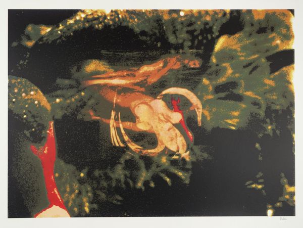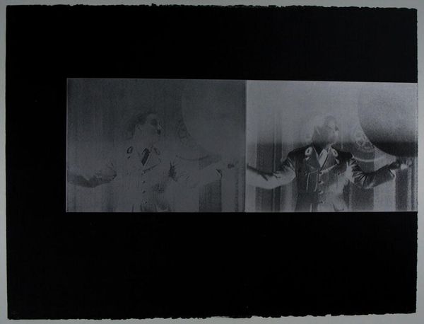 Curator: Richard Hamilton’s “Kent State” presents a blurred image, seemingly captured from a television screen. It’s held in the Tate Collections. Editor: It feels ghostly, like a half-remembered nightmare. The indistinct figures and washed-out colors contribute to an unsettling atmosphere. Curator: Hamilton was very interested in mass media. He used the silkscreen printing process in this instance to replicate the degraded quality of televised images of the Kent State shootings. Editor: The television, then, becomes a symbol in itself, representing both the horror and the mediated distance from it. Did Hamilton intend to implicate the viewer, passively watching from afar? Curator: Possibly. He often explored the social and political implications of consumer culture and media representation. Editor: The red accents amid the grey palette—they feel like a visual echo of spilled blood, heightening the tragedy's symbolic impact. It haunts the image. Curator: Considering its technical reproduction and dissemination, the horror here turns into just another object of consumption. Editor: Indeed, this pushes us to consider the circulation and cultural memory of such tragic symbols.