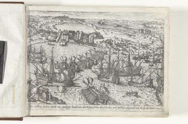 This engraving, created in 1572 by an anonymous artist, captures Bossu's invasion of Rotterdam. Rendered with meticulous detail in a monochromatic palette, the scene unfolds with a captivating sense of depth, drawing the eye from the city's detailed skyline to the chaotic foreground. The composition is structured around a stark contrast between the rigid architecture of Rotterdam and the dynamic movement of the invading forces. Note how the artist uses the lines of the river and fortifications to guide our gaze, creating a visual pathway into the heart of the conflict. Semiotically, the image functions as a historical document, yet it also transcends mere representation. The strategic use of perspective and shading transform the event into a powerful commentary on power and vulnerability. The use of black and white contributes to the starkness of the scene. Ultimately, the enduring power of this piece lies in its ability to destabilize fixed meanings, inviting us to question the narratives of history and the visual codes through which they are constructed.