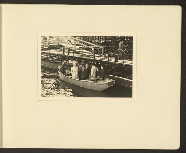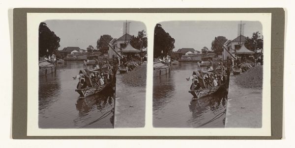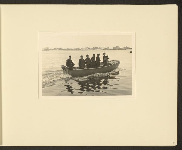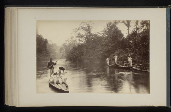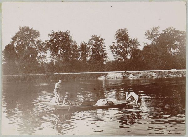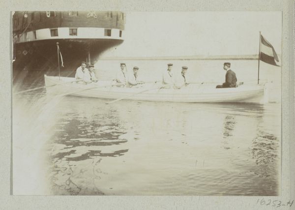 Editor: This gelatin-silver print, taken before 1894 by Hendrik Herman van den Berg, is called "Gezelschap in een roeiboot van Hotel Wijkerburg, Voorburg," which translates to "Company in a Rowboat of Hotel Wijkerburg, Voorburg." I'm struck by how posed and almost theatrical everyone seems, even amidst what appears to be a leisurely activity. What do you see in this piece that speaks to the social dynamics of the time? Curator: This image offers a fascinating snapshot into the leisure activities of the late 19th century, particularly the performance of social class. Notice the umbrellas, protecting delicate complexions from the sun. It speaks volumes about gendered expectations and the accessibility of leisure. Who was included, and perhaps more importantly, excluded from such scenes? Editor: That’s a great point about the umbrellas and social exclusion. I hadn't thought of it that way. Curator: Think about the rise of photography as a medium too. How does its growing accessibility shape the way people document and, perhaps, idealize their lives? Consider this: who typically controls the narrative and whose stories are more often seen? Does this image confirm or challenge existing social hierarchies? Editor: It definitely feels staged to project a certain image. Perhaps to present themselves as cultured and well-off. But there’s also a sense of fragility, maybe in the knowledge that they’re crafting a specific representation. Curator: Exactly. And how might this pursuit of representation relate to contemporary concerns around social media and constructed identities? The pursuit for the ideal self may be different now, but what if some issues remain fundamentally the same? Editor: So, in a way, they're performing their social roles for the camera, much like we perform them online today? I’ll definitely think about the intersection of photography, social class, and performance. Thanks! Curator: Indeed. Reflecting on how the dynamics of representation then can inform our understanding of power and identity now is key. This image shows us just how durable issues about identity can be across generations.