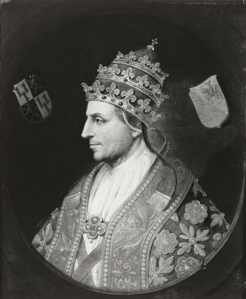 This is a photographic reproduction of a painted portrait of Pope Adrian VI by an anonymous artist. The most striking visual element is the papal tiara, the triple crown. This potent symbol signifies the Pope’s threefold authority, as father of kings, governor of the world, and vicar of Christ. Consider how the tiara, as a symbol of power, has antecedents in ancient headdresses. Think of the Phrygian cap of Mithras or the crowns of Persian emperors, each adapted to convey spiritual and temporal authority. The X on Adrian’s chest, too, is a motif that echoes through time, appearing in various forms across different cultures, from heraldic emblems to religious symbols of Saint Andrew and Saint Patrick. These symbols carry ancestral memories that stir our collective consciousness. These symbols are not static; they evolve, adapt, and resurface throughout history. In each epoch, their meanings are layered anew, embodying both continuity and transformation.