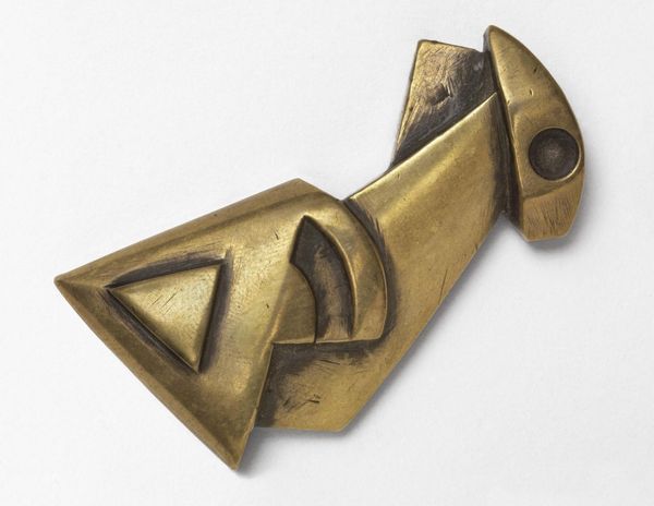 Editor: Right now, we’re looking at a most unusual teapot, created around 1920 and held by the Minneapolis Institute of Art. It's constructed from metal and wood in angular, geometric shapes. It feels almost aggressively modern! What is your interpretation of this work? Curator: It's fascinating, isn't it? I'm drawn to how it takes something as homely as a teapot and gives it this severe, almost monumental presence. Look at the hammered metal, contrasting with the smooth wood. It’s undeniably Art Deco, a style known for its sleek lines and machine-age influence, though with a crafted look that hints at something ancient, almost ziggurat-like. I can imagine a stylish robot enjoying a cuppa from this. Do you think the artist was commenting on how industry was shaping everyday life? Editor: I hadn’t thought of the robot angle! That's a really interesting take, blending the antique with the futuristic. I was more focused on the pure geometry and almost brutal simplicity. Curator: Exactly! Brutal yet elegant. Perhaps that tension between crafted and manufactured, organic and geometric, is the real heart of the piece. It asks us: what does it mean to bring art into the domestic space, into the everyday? Does it serve, or does it dominate? Editor: I guess it’s a conversation starter either way. Something so functional turned into something so thought-provoking. It really shakes up your perception of what a teapot, of all things, could be! Curator: Precisely! And that's the magic of art, isn't it? Taking the mundane and turning it into something utterly…triangular. It leaves you brewing ideas long after the tea is gone.