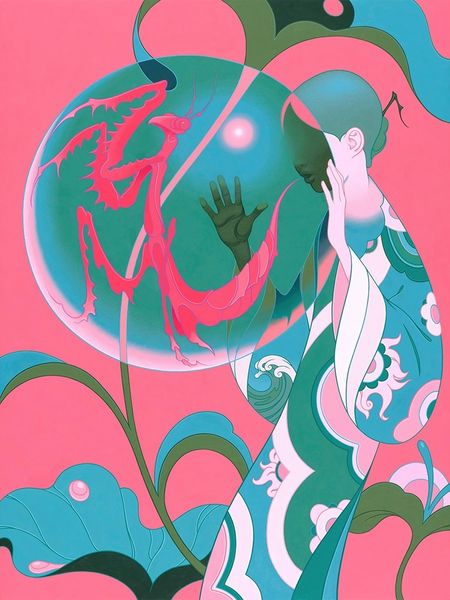 Here we have “Violane” by James Jean, an artist whose work invites us into a realm where identity is fluid, and narratives are woven with personal symbolism. Jean himself has spoken about his work as a reflection of his own psyche. The artwork, with its dazzling color palette and surreal imagery, seems to suspend us between dream and reality. The central figure, adorned with gem-like protrusions, hoists a geometric form above, set against a fractured landscape that includes a saxophone. This might be about the burden of the self, as we carry the weight of our histories and expectations, yet find moments of expression and transcendence. Jean’s blending of Eastern and Western art traditions challenges us to think beyond conventional boundaries. Through his exploration of personal mythology, he offers us a mirror to consider our own identities. The emotional resonance of “Violane” lies in its invitation to embrace the complexities of the self.