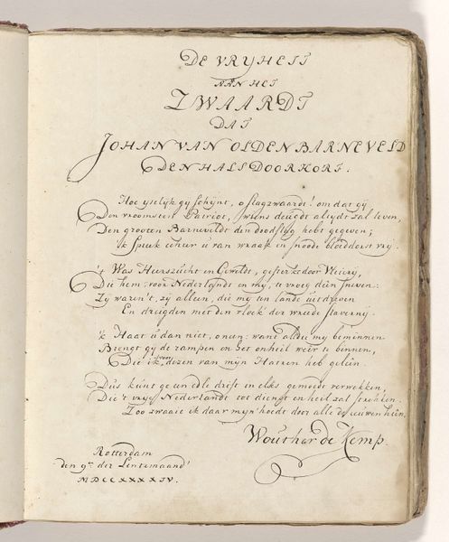 Here we see Frans Greenwood’s early 18th-century meditation on the sword that beheaded Johan van Oldenbarnevelt in 1619. The writing, elegantly inscribed, evokes not merely a historical event, but also something deeper. Consider the sword itself: historically a symbol of power and justice, yet here it is an instrument of brutal finality. The sword carries echoes of ancient sacrificial rites, where the blade was the divider between life and the divine. This act of beheading recalls images of John the Baptist. The motif of the beheading appears across cultures, from Salome’s dance to Judith’s triumph, each carrying layers of meaning. The image holds a visceral power. It engages our deepest fears of mortality and justice, compelling us to confront the cyclical nature of power. It reminds us that symbols are never static but constantly evolving.