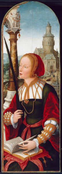 This is Jacques Daret’s portrait of Louise of Savoy as Sibylla Agrippa, painted sometime in the 15th century. Daret rendered this likeness in oil paint, a relatively new medium at the time. The smooth, almost enamel-like surface is a testament to the artist’s mastery of layering and blending pigments. But the true marvel lies in the details of Louise's attire. Consider the sumptuous fabric of her headdress, likely silk or velvet, adorned with intricate embroidery or brocade. These details reflect the wealth and status of the sitter. Such textiles were not merely materials but signifiers of power and class. Notice also the book she holds, its pages meticulously rendered with gold leaf. Its presence speaks to literacy, privilege, and access to knowledge, luxuries not afforded to most during this period. Daret's skillful rendering elevates craft to the realm of fine art, inviting us to consider the social and economic context in which this portrait was created.