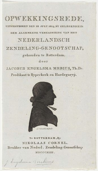 Editor: So, this is the title page for the series of signatures from the Assembly of Notables, created in 1814 by Cornelis van Baarsel. It's a print, an engraving, entirely typographic. I’m struck by its formality and almost austere presentation. What feelings does this provoke in you? Curator: You know, it whispers of a very particular moment in time. Think about it – 1814. Napoleon’s star is falling, Europe is redrawing its map, and this engraving documents the signatures of Dutch dignitaries deciding on a constitution for the “United Netherlands.” It’s fascinating that typography can convey such weight, don't you think? Editor: Absolutely. The hand-drawn type adds character to its historical value. But is that all it is—historical? Does the piece communicate more? Curator: For me, it transcends pure function. Notice how the varying font sizes create a visual hierarchy. The eye dances across the page, guided by Baarsel’s deliberate choices. The phrase "Vereenigde Nederlanden," "United Netherlands," is emblazoned like a promise…or perhaps a fragile hope. Do you feel the optimism in it? Editor: I can see it now, the promise and the fragility you mention. Initially, I only saw the stiff formality. But I hadn't considered how the typography subtly expresses the cultural context, and those hidden emotions underneath. Curator: And isn't that the magic of art? To unearth the layers hidden beneath the surface, until the feelings shimmer and beckon! Editor: Absolutely! Thanks, I will consider more often how typeface choices influence our reading of a piece, even one like this.
