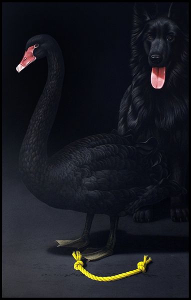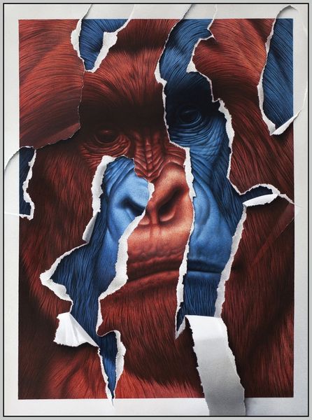 Eckart Hahn made this work, Rot Blau, using colored pencils on paper. The striking realism and texture of this piece hinges on Hahn's intense labor and precision. Each feather is meticulously rendered, giving the parrot's plumage a palpable depth. But the deliberate 'tearing' of the image introduces a compelling twist. The red interior, exposed by the tear, disrupts the realism, drawing attention to the artifice of the image. It's a reminder that this isn't simply a depiction of nature, but a constructed representation, carefully built layer by layer. The choice of colored pencil, a humble medium often associated with childhood or amateur art, is also significant. Hahn elevates this everyday material through sheer skill and dedication, blurring the boundaries between 'high' and 'low' art. The contrast between the trompe l'oeil effect and the handmade quality of the drawing encourages us to consider the value we place on skill, labor, and artistic illusion.