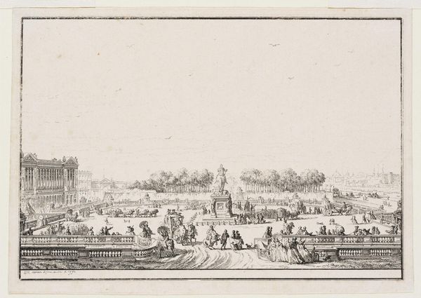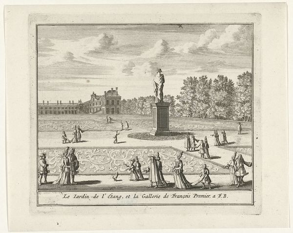 Jan Lamsvelt created this view of the Cour de la Fontaine at Fontainebleau Palace using etching. Notice how the lines of the architecture and the figures create a structured yet dynamic composition, with the fountain serving as a central focal point. Lamsvelt’s meticulous attention to line and detail invites us to consider the semiotic system at play. The formal garden, with its ordered arrangement, contrasts with the somewhat chaotic scattering of figures across the courtyard. This opposition challenges the fixed meanings of space, perception and power. The architecture, rendered with precision, frames the natural elements, hinting at the intersection of human control and natural forms. Through this lens, the artwork invites us to question established values and consider the dialogue between art, nature, and the structures of power.