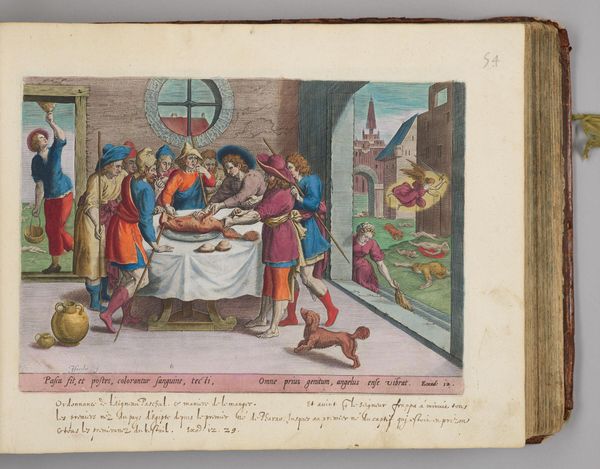 Curator: Adriaen Collaert's print, "Visiting the Prisoners," presents a complex scene of charity, rendered with meticulous detail on a relatively small plate measuring about 19 by 24 centimeters. The composition strikes me as quite theatrical. Editor: It is! The architecture almost boxes in the figures, heightening the sense of their shared predicament and the act of benevolence performed within these constraints. Consider the print's social function. Collaert likely created this for a book—possibly one meant to encourage charitable acts within specific social circles. Curator: Precisely. The etching process itself—the labor and skills involved—made possible the reproduction and dissemination of this image. The varied states of the prisoners, from the gaunt to the seemingly resigned, suggest a spectrum of human suffering, deliberately presented to stir compassion. Editor: And note how the act of visiting itself becomes a performance, a staging of piety meant for both earthly and divine audiences. The clothing of the visitors is quite detailed, suggesting their elevated social status, which adds another layer to the exchange of power within this setting. Curator: I find myself dwelling on the very material conditions of early printmaking and their role in shaping visual culture and social behavior. Editor: It’s a powerful testament to how art, even in its most accessible forms, can both reflect and actively shape societal values.