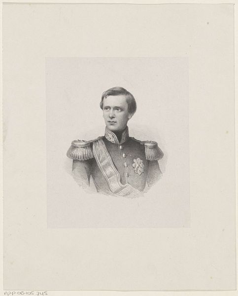 This is a print of F.A. Kortz made by Johan Hendrik Hoffmeister, likely in the mid-19th century. Through the sharp lines of the engraving, Hoffmeister offers us a glimpse into the military and social structures of the Netherlands. The image is rich with meaning; Kortz’s uniform tells a story of status and service. Consider how the artist uses the visual language of rank - the epaulettes, the medals, the very cut of the jacket - to communicate power and authority. This wasn't just about likeness; it was about projecting an image of the military elite within Dutch society. The image was likely commissioned or made for family. To truly understand this portrait, we would need to delve into the military archives of the Netherlands, examining the records of Kortz's service and the regulations governing military dress. Through such research, the role of art as a reflection of - and a participant in - the social hierarchies of the time becomes clear.