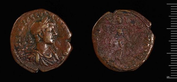 Editor: This is a Tetradrachm of Attembelos III. It's a coin. It looks worn, but the image of the ruler is still visible. What can you tell me about it? Curator: This coin speaks volumes about materiality and power. Its copper and bronze composition tells us about the available resources, while its weight indicates its intended value and purchasing power. Editor: That's interesting, I hadn't considered it in terms of materials. Curator: Consider also the labor involved in its production: mining, smelting, engraving the dies, and striking the coins. Each step reveals aspects of the society that produced it. Editor: Thinking about it that way, it's much more than just a coin. Curator: Exactly. It's a window into the material conditions and power structures of the time. Editor: I learned a lot about how materials shaped art in history. Curator: Indeed, by studying material culture, we uncover rich insights into history.
