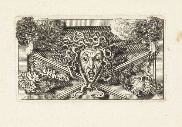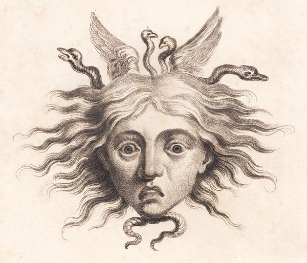 Editor: Here we have "Medusahoved" by J.F. Clemens, made sometime between 1748 and 1831. It's a pencil and engraving print of Medusa. It’s striking how the snakes are rendered with such delicate lines. What aspects of its creation and context do you find most interesting? Curator: The crucial aspect here is understanding how reproductive prints like these functioned. It’s not just about depicting Medusa; it's about the means of disseminating imagery, and engaging with mythology through reproducible media. Consider the labor involved: the artist, the engraver, the paper maker. Editor: That's interesting! I hadn’t thought of it that way. So the process of making the print itself is as important as the subject matter? Curator: Absolutely! This print allowed wider access to classical imagery and stories. How does its existence democratize art consumption? Who could afford original artworks versus who could obtain a print like this? Editor: So it's not just about the artistry, but also about the accessibility and circulation of images during that time. Are there any other social implications that you see? Curator: Certainly. Prints could spread political messages or challenge social norms far easier than paintings reserved for the elite. What sort of visual culture was taking shape when this image was being produced and reproduced? Editor: So, in essence, this seemingly simple image opens up a whole discussion about artistic labor and social dynamics. That’s a far richer interpretation than just seeing it as a mythological depiction. Curator: Precisely. By examining the materiality and means of production, we understand the artwork's role in shaping and reflecting its social context. We aren't just looking *at* Medusa; we are investigating *how* and *why* she became so widely available. Editor: I'll definitely look at art with a different perspective from now on. It’s amazing to consider all the hands involved in bringing a piece like this to the public!