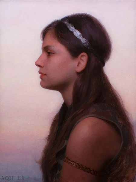 Editor: Here we have Graydon Parrish's oil painting, "Young Woman Turning to Her Right". It strikes me as both classical and intensely personal, somehow intimate despite its detachment. The subject’s gaze is averted, her expression is unreadable, which makes you wonder, what's she thinking? What do you see in this portrait? Curator: Oh, I think that averted gaze is everything. She’s not offering herself to us, is she? Parrish has captured her in a moment of internal reflection, turning away, almost bashful or hesitant. It makes her so incredibly human, doesn't it? I am also fascinated by the way the light plays on her face. He's using realism in a way that isn't photo-realistic at all - which speaks to emotional, not literal truth, and how it resonates with me. Editor: Exactly, it's that blend of observed reality and maybe felt reality, right? You almost forget it's oil paint because she seems to exist right there. Does that make sense? Curator: Perfectly. Parrish's work captures a specific quality of youth, perhaps a dawning self-awareness? It reminds me, dare I say, of my own adolescence… Do you see what I mean about the painting leaning into truth beyond just documentation? Editor: Yes, absolutely. It's about finding those moments where art touches reality and transforms it into something…more. Curator: Precisely! I think what this portrait evokes most is the simple power of observation - watching, waiting, knowing there's a world contained in everyone, including this Young Woman turning to her right. Editor: That's given me a lot to think about. Thanks for your perspective.