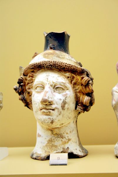 This Gorgon Head Antefix, possibly from Taranto, was created in Ancient Greece out of terracotta and paint. The use of terracotta speaks volumes. Unlike marble sculpture, which declared wealth and power, terracotta was readily available. The relatively low cost of materials suggests a wider distribution and access to art within the community. The gorgon's face, rendered with expressive features and painted details, emerges from this humble material. Its creation likely involved a mold for the basic shape, allowing for repeated production. The hand-applied paint then provided individual character, transforming a basic form into a powerful symbol, used for protection, decoration, and perhaps a touch of the theatrical, on buildings. By understanding the materials and manufacturing processes behind it, we appreciate how craft and function were intertwined in ancient Greek society.