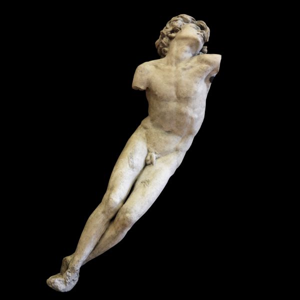 Editor: This is *Study for a Hovering Putto* made by Jan Baptist Xavery sometime between 1735 and 1750. It's a baroque sculpture and it really has a playful innocence to it, doesn't it? I'm struck by the forward movement suggested by the outstretched arm... What do you see in this piece? Curator: You've touched on something lovely – the sheer joy of buoyant potential. This little chap, or "putto," exists in a state of becoming, doesn't he? He's not quite soaring, more like dreaming of it, perpetually on the cusp. It's beautiful how Xavery captured this transitional, hopeful moment. I can almost feel that feeling. What do you make of its possible allegorical intent? Editor: I didn't realize it could be allegorical! I was just so focused on the cherubic figure and the realism... Are you suggesting there might be a deeper meaning beyond the representation of a cute baby angel? Curator: Indeed! In baroque art, putti weren't merely decorative. They often symbolized love, divine inspiration, or acted as messengers. Imagine this little putto, then, not simply floating but carrying a silent promise. Now, what sort of a message do you imagine he is on the way to deliver? Or, is it all, simply an attempt at pure artistic perfection? Editor: I love that idea! Maybe he's bringing a message of hope and joy... it does give the sculpture a richer layer of meaning to consider its historical context and potential symbolism. It changes everything. Curator: Exactly! Sometimes art speaks loudest when we listen with our historical imagination. So glad we had this moment together to reflect on this.