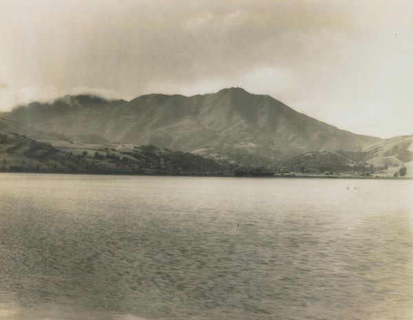 This black and white photograph captures a village scene from a lake against a mountain landscape, made by Johanna Hermina Marmelstein. The composition is all about how light and dark interact. The way the light falls on the water, creating these shimmering reflections of the trees and mountains, is totally mesmerizing. It's almost like the world is doubled, a mirror image that's both familiar and strange. Looking at the texture of the water, you can see subtle gradations that suggest movement and depth. It's incredible how a simple palette can evoke such a sense of atmosphere and place. I think of artists like Gerhard Richter who also work with photography, embracing the accidents and imperfections of the medium to create something that feels both real and dreamlike. This piece is a reminder that art is an ongoing conversation, a way of seeing and experiencing the world that is always open to new interpretations.