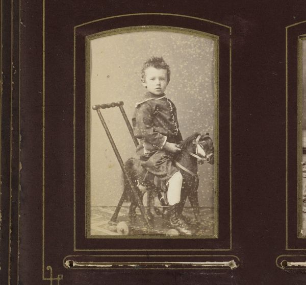 J. Bourens captured this young boy upon his wheeled toy horse with photography, a relatively new medium, freezing a fleeting moment for eternity. The horse, since antiquity, is more than a mere beast of burden; it embodies power, nobility, and virility. Consider the equestrian statues of Roman emperors, symbols of their dominion. Here, the child astride his toy mimics this ancient motif, asserting a sense of control, a primal urge to master his world. Even in play, the echoes of cultural memory resonate, revealing how symbols transform yet endure, shaping our perceptions across generations. This image, seemingly simple, taps into a deep well of human experience, where play mirrors power, and innocence foreshadows the complex roles we inherit.