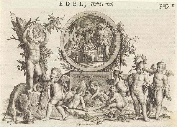 Editor: Here we have "Bacchus op handen gedragen," or "Bacchus Carried on Hands," an engraving from sometime between 1601 and 1657, made by Pieter Serwouters. It's brimming with figures in this chaotic celebration...a very different aesthetic from what's trending now. What can you tell us about it? Curator: Chaotic, yes, a glorious, boisterous chaos! This print, though small, captures the very essence of the Baroque. Imagine stepping back into a time when artists reveled in dynamic movement and exuberant emotion. I feel swept up in the revelry, almost hearing the echo of trumpets and tambourines. Isn’t it intriguing how Serwouters manages to convey so much energy within such a constrained space? Editor: It is fascinating how much movement is captured, it is overwhelming. It looks like there is also a satyr. Is there a story that explains what’s happening here? Curator: Spot on! The satyr, the overflowing scene…it all speaks of Bacchus, the Roman god of wine, fertility, and theatre. Forget solemn deities perched on Olympus, we have here the wild, earthly energy of Dionysus – his Greek counterpart. This print reminds me of wild bacchanals, frenzied celebrations honouring him, blurring the line between divine and human. Do you see how the figures seem to teeter on the edge of frenzy, their movements exaggerated and limbs intertwined? Editor: Yes! It seems…uncontrolled. You feel as if things might collapse any minute. I hadn’t thought of how theatrical the engraving is. Curator: Exactly! The engraving is like a still from a play! But don't get lost in the story only, what feelings emerge? Close your eyes and just imagine feeling yourself among the figures. What did Bacchus and his devotees feel about life? Editor: Exuberance...freedom. And you’ve shown me that what I thought was chaotic now looks celebratory and full of life. I guess that is one story we all can use! Curator: Beautiful. And isn’t it amazing how art, even something as seemingly "historical" as this engraving, can tap into something primal within us all? This Bacchanal captures our very human desires and instincts and I've got the craving for a good ripe grape right now. What about you?