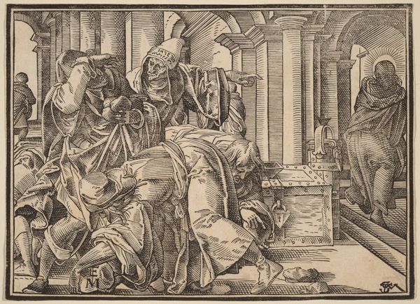 Curator: Oh, my. The overall impression is undeniably grand. Like a stage set for some profound, slightly theatrical declaration. The artist really committed to every etched line. Editor: Indeed! This is a work possibly dating back to 1630, an engraving by Christoph Murer titled, “Christ Tells His Disciples of the Last Judgement.” What you're responding to, I believe, is that the artist sought to express not just a literal biblical interpretation, but to give us a psychological landscape, through symbol and imagery. Curator: Exactly! A landscape! Because at first, I thought I was just looking at a chariot and horses, but now I realize this chariot is part of a procession towards the “last judgment,” the artist uses landscape, with city and mountainous outcrops, in the background to show that it will engulf all things. And the wheel...is that a lion’s head on the hub? It has all the force of revelation, I'd imagine! It's quite arresting, this mixture of divine decree and real anxiety. Editor: The lion could certainly be viewed in multiple ways—it may even serve as an allusion to judgment's solemn ferocity, traditionally linked with Christ. Furthermore, notice how Murer meticulously renders robes, turbans, and horse tack. This isn’t mere adornment. Such care conveys not only rank but responsibility. The weighty garments of the powerful often disguise and represent a complex burden: a sort of codified, wearable morality, so to speak. Curator: It is wearable! All I feel is the weight. It all creates an impression of an impending inevitability, almost like a cosmic doom encroaching. Even though its Christian iconography feels specific to a particular place and time, the feeling of being judged—scrutinized—transcends. Editor: I think it would be tough to argue otherwise! There's something about the universality of those archetypes he uses, even amidst such highly wrought detail. Curator: Well said! Editor: A final thought: What a striking intersection between individual moral responsibility and broader cultural narratives represented. The print beckons consideration beyond period dogma and reaches into more universal territories.