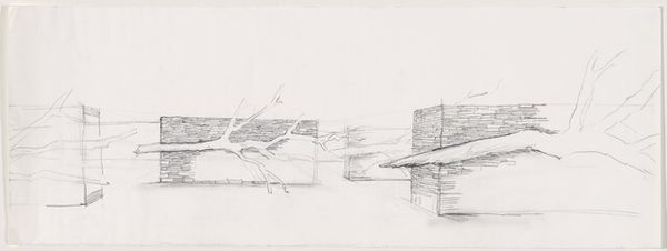 Curator: This is John William Casilear's "Glen's Falls (from Sketchbook)," dating from 1834 to 1838, a delicate pencil drawing. Editor: Immediately, I notice the tension between the delicate linework and the rather grand subject—a powerful waterfall rendered with such restraint. Curator: Indeed. The work presents us with a study in contrasts. Casilear meticulously maps the geological formations, those stark rock faces, using an almost architectural line. The precision suggests a search for structure within nature's chaos. Editor: The bridge looming in the background, and the buildings, are heavy symbols too. They represent humanity's intrusion on the sublime, a common theme among Hudson River School artists. Do you think he romanticized or warned about industrial progress? Curator: That ambiguity is compelling. The sharp edges of the built environment compete with the softer lines of the natural elements, establishing an interplay. Even the textural differences—the smooth paper against the jagged lines—intensify the dichotomy. Editor: It makes me wonder what Glen’s Falls meant to those encountering it. Waterfalls often symbolize the passage of time or purification, don't they? And considering it was part of a sketchbook, might this be his personal attempt to capture nature's transience? Curator: The very act of sketching connects Casilear to a tradition of close observation and documentation. Perhaps Glen's Falls resonated with him because its image embodied something of America's expanding identity. Editor: This delicate work certainly gives a lot to contemplate within the composition itself and what the artist intended for the viewer's engagement with its images and motifs. Curator: Ultimately, Casilear uses line to synthesize nature, architecture, and feeling into a deceptively simple arrangement of planes and forms. Thank you for offering new insights for me too.
