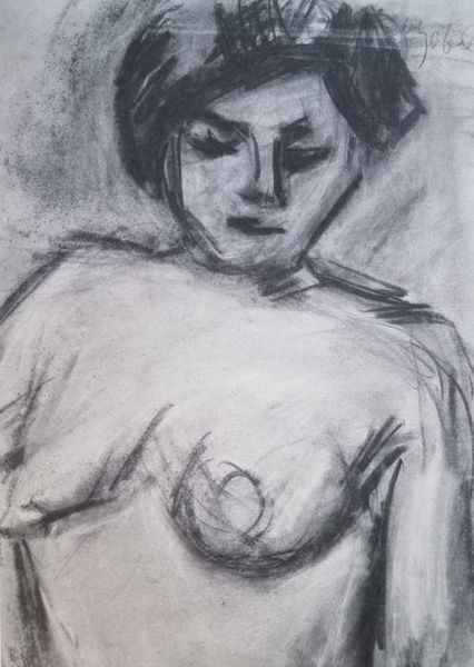 Editor: Here we have Béla Czóbel's "Modell," a charcoal drawing from 1928. The subject's pose is really striking; there's this tension in the figure, a kind of raw emotion that I find very compelling. What can you tell me about the way this piece might have been received back then? Curator: It's interesting you pick up on the emotion, because Expressionism, which influenced Czóbel, often aimed for that visceral reaction. Considering this was made in 1928, we should remember the context. The aftermath of World War I had a profound impact on artists. There was a widespread disillusionment with traditional values and artistic forms. Nudes, once symbols of classical ideals, started being used to portray psychological states, often with an unvarnished honesty. Editor: So, showing the body in this way was almost a challenge to societal norms? Curator: Precisely! And the use of charcoal adds another layer. It’s a very direct, immediate medium. Think about how academic drawing academies relied upon charcoal in order to instill their students with ideas of perfection, this piece shows that academic tradition subverted. Czóbel is using this classical material to depict something raw, almost unfinished, turning that institutional process on its head. How does that affect your reading of the figure's expression now? Editor: It makes me see the vulnerability even more. Knowing it was made during that time adds so much depth. It’s no longer just a portrait, it's a reflection of the post-war mindset. Curator: Absolutely. And think about who had access to art then, how these images were displayed and discussed. "Modell" isn't simply about a nude body, it's about the public role of art and how it reflects the emotional and social upheavals of the time. Editor: That completely reshapes how I view this piece! Thanks for pointing that out, the cultural context really changes the entire meaning.