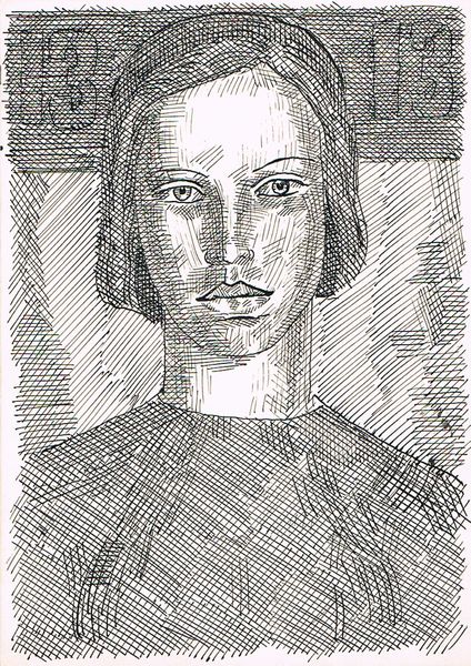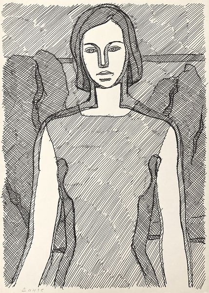 Editor: This drawing, "Female Image" by Hryhorii Havrylenko from 1965, is rendered with pen and ink. The repeated lines give it an almost fabric-like quality. It’s intriguing. What historical context informs this kind of stark portraiture? Curator: Indeed. Think about the socio-political context of 1960s Ukraine, then part of the Soviet Union. Official artistic expression was often heavily regulated. This image, while seemingly simple, possibly operates as a subtle form of resistance, emphasizing individuality outside of prescribed Socialist Realism. Notice the absence of overt symbolism or propaganda. The ‘private collection’ provenance further hints at its status outside official channels. Do you see how the line work itself contributes to this reading? Editor: Yes, the deliberate, repetitive strokes could signify both constraint and the artist’s determined hand. Was this style common, or did it set Havrylenko apart? Curator: Artists working outside the mainstream in the Soviet Union often explored simplified forms and direct expression, perhaps due to limitations on materials or a deliberate choice to eschew elaborate, propagandistic styles. However, this very directness became a statement. Think about the underground art scene, the desire for authentic representation against the backdrop of enforced uniformity. It’s in that tension, I think, the drawing finds its power. What does the portrait communicate to you in terms of this quiet assertion of identity? Editor: I see it now. It’s not just a simple portrait; it's a statement of selfhood in a time when that was politically fraught. I appreciate seeing the drawing as a form of quiet defiance. Curator: Precisely. It reminds us that artistic choices, even seemingly formal ones like line and composition, are always intertwined with their socio-political moment. The image takes on new meaning when we consider its origins.